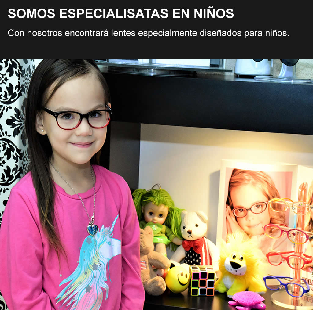 También somos especialistas en niños, para lo cual ayudamos a lograr una mejor adaptación con cristales y armazones terapéuticos.